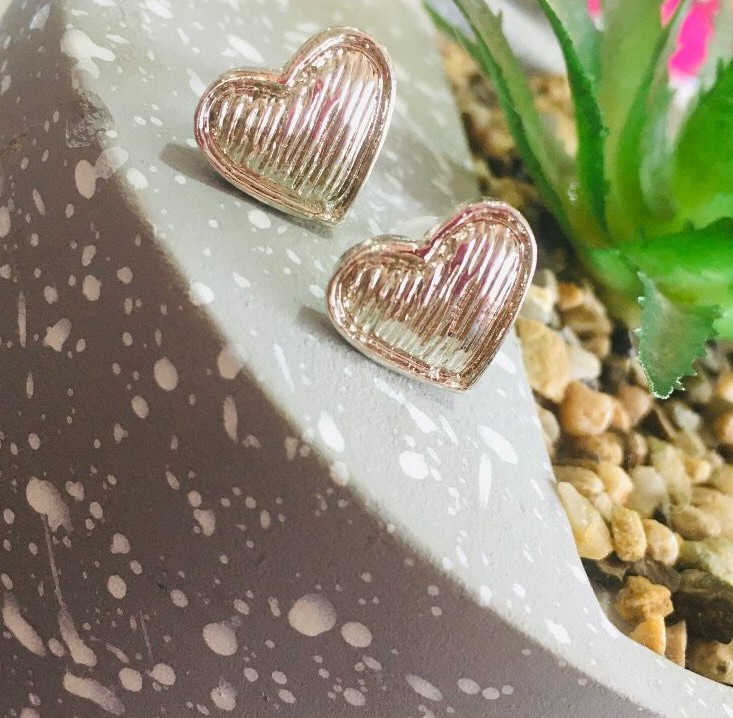 Brinco de metal em formato de coração prata.