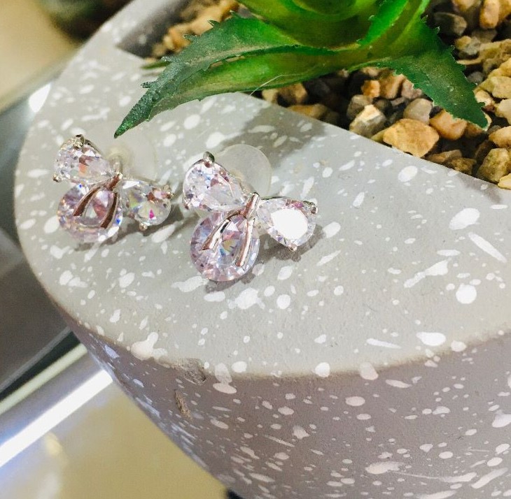 Brinco laço pedra branca.